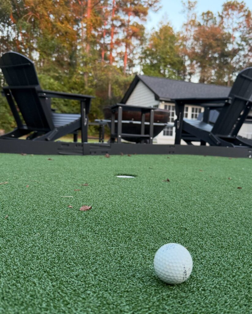 There was a tree in front of the lodge that we ultimately ended up removing. It was a little too close to the building and it was blocking sunlight access to the yard. With it gone, we were able to install fresh zoysia sod for a uniform look. As a finishing detail, we brought in this unique deer statue from a place in Jena’s hometown. It’s one of the first things you see as you pull onto the property for your hunting trip!